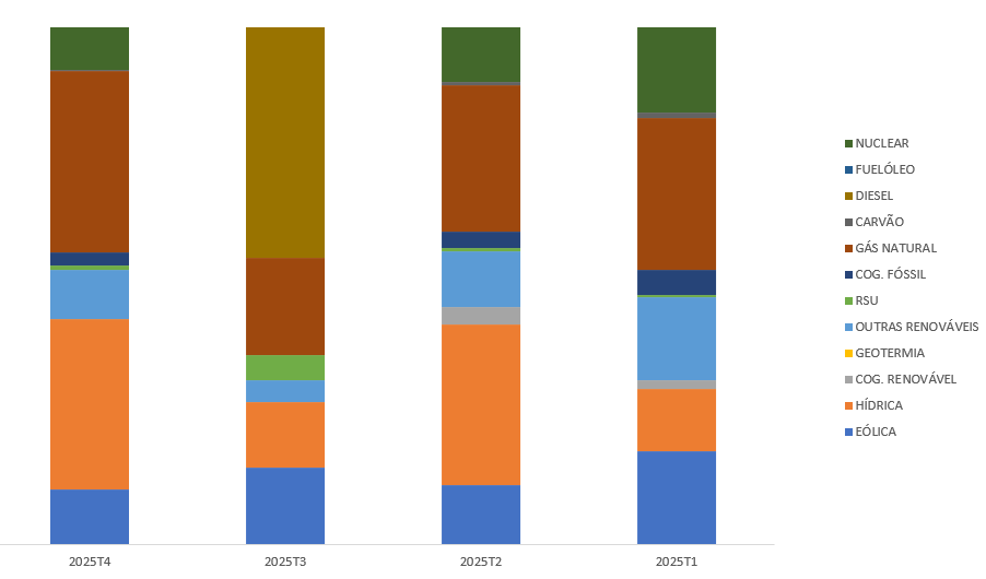 A rotulagem de energia elétrica visa dar a conhecer as fontes de energia primárias utilizadas na produção de energia elétrica. A Naturgy é um operador ibérico do setor energético que comercializa electricidade em Portugal, detendo diversas tecnologias próprias para produção de energia elétrica em Espanha. Enquanto comercializador de energia que opera no mercado nacional para cumprimento da Lei nº 51/2008, de 27 de Agosto, e o Regulamento de Relações Comerciais, disponibiliza informação relativa ao mix energético, e às emissões específicas e impactos ambientais inerentes à actividade. A figura abaixo representa o mix de energia comercializada pela Naturgy Iberia, S.A. com valores trimestrais, e a sua repartição por tecnologia utilizada.